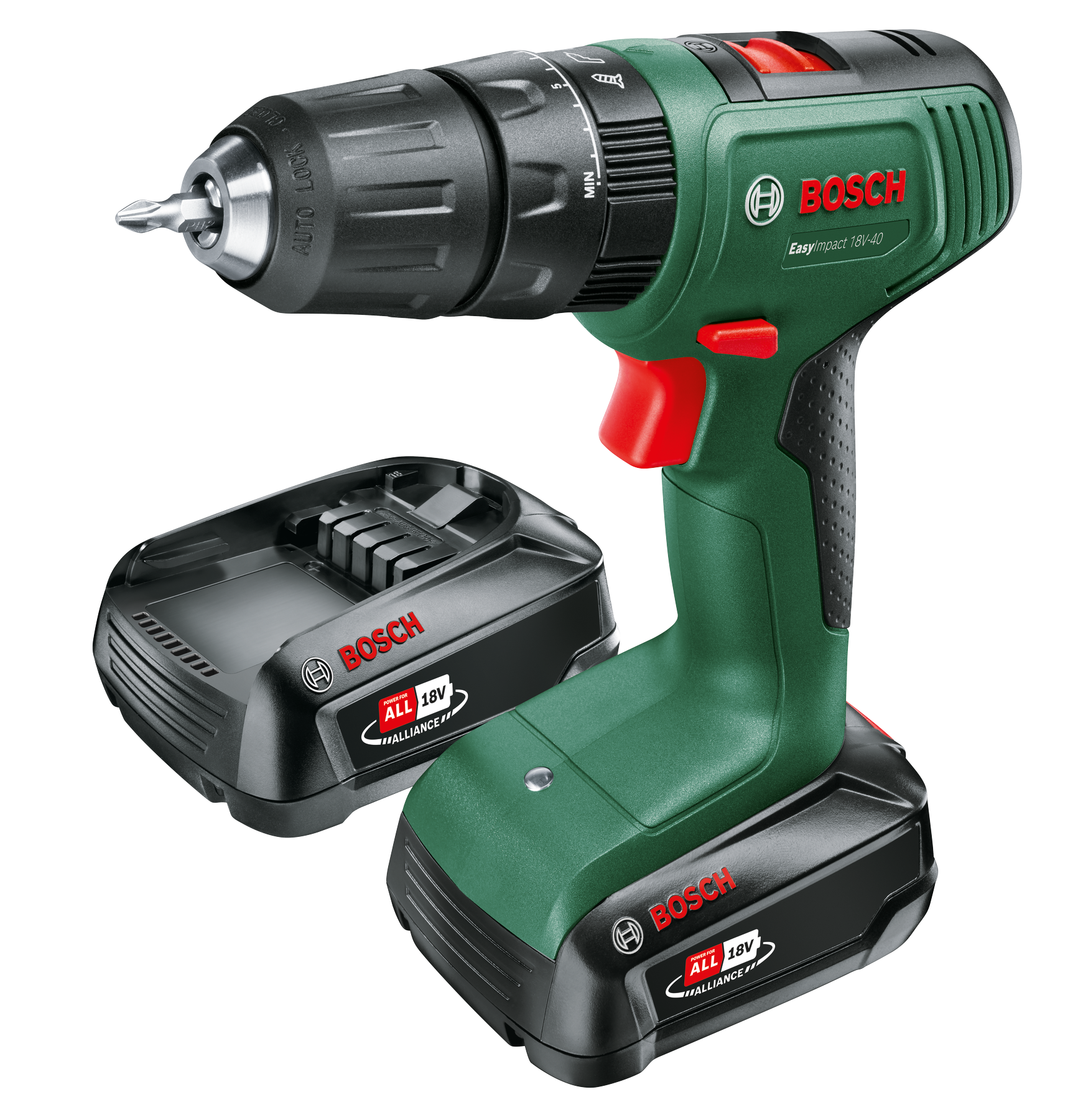 Táto akumulátorová kombinovaná vŕtačka EasyImpact 18V-40 je flexibilné, univerzálne náradie na rozmanité vŕtanie a skrutkovanie. Je vybavená 2-rýchlostnou prevodovkou na rýchle vŕtanie a výkonné skrutkovanie; 20 nastavení krútiaceho momentu umožňuje maximálnu presnosť skrutkovania. Jednoobjímkové skľučovadlo 13 mm uľahčuje výmenu vrtákov a skrutkovacích hrotov. Vďaka ergonomickej konštrukcii a vstavanému osvetleniu LED je práca efektívna a komfortná aj na slabo osvetlených miestach. Toto náradie je jasnou voľbou pri práci s drevom, kovom, plastom či murivom. Toto náradie patrí do aliancie POWER FOR ALL ALLIANCE. Jeden akumulátor možno používať s množstvom náradia rozličných značiek.