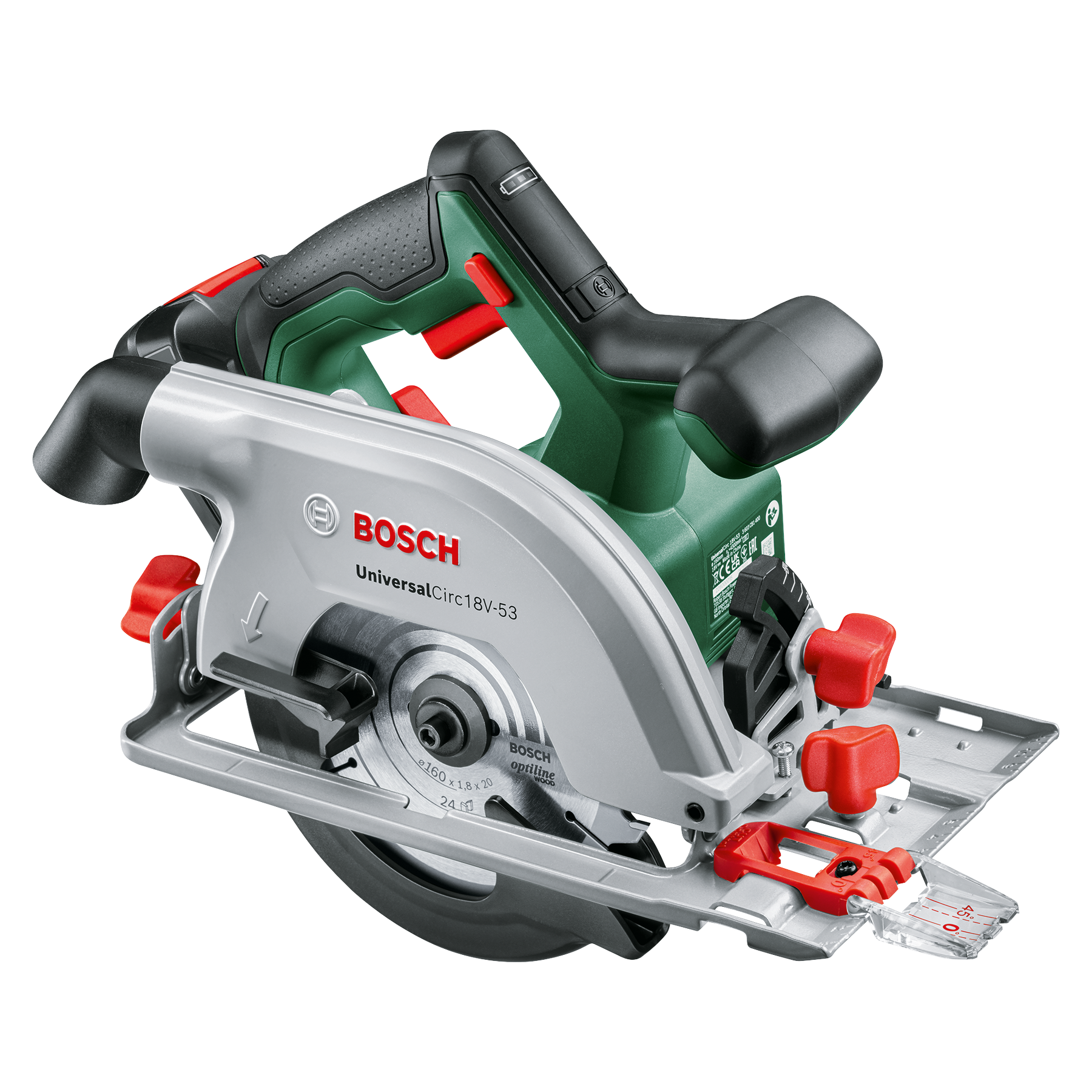 UniversalCirc 18V-53 je akumulátorová okružná píla najlepšia vo svojej triede na širokú škálu práce s drevom v kategórii DIY. Ponúka kapacitu rezu 53 mm na presné rezanie dreva, drevotrieskových dosák a iných materiálov na báze dreva. Vysokokvalitný pílový kotúč 160 mm s 24 karbidovými zubmi a robustný alumíniový horný kryt zaručujú presné a výkonné rezanie. Domácich majstrov prekvapí veľká kapacita rezu 33 m v drevotrieskovej doske hrúbky 19 mm na nabitie akumulátora (2,5 Ah). Toto náradie je kompatibilné so systémom vodiacej lišty Bosch Home & Garden, zaručuje optimálnu presnosť, a to najmä pri dlhých rezoch. Náradie umožňuje pripojenie vysávača, odsávanie viac než 90 % prachu a čisté pracovisko. Toto náradie patrí do systému 18V POWER FOR ALL. Jeden akumulátor pre všetko náradie 18V POWER FOR ALL.