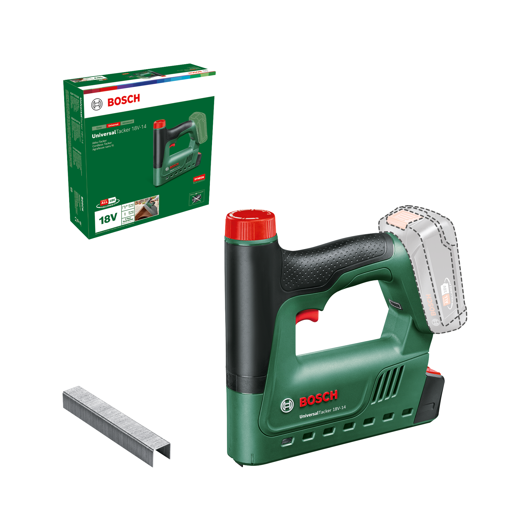 UniversalTacker 18V-14 je akumulátorová klincovačka a sponkovačka, ktorá prináša novú úroveň komfortu a všestrannosti pri upevňovaní v domácnosti. Toto ergonomické náradie navrhnuté na jednoduché spinkovanie a klincovanie zvláda výkonné spinkovanie a klincovanie do mäkkého a tvrdého dreva. Pri práci s rozličnými materiálmi a dĺžkami spiniek je možné upraviť silu úderu na optimálnu hodnotu otáčaním kolieska sily úderu. Systém stlačenia a uvoľnenia zaručuje optimálnu kontrolu pri práci elimináciou samovoľného spustenia. Pri rýchlych upevňovacích prácach, napr. výstelke zvýšených záhradných záhonov, je možné aktivovať funkciu kontaktnej aktivácie, ktorá dosahuje až 30 úderov za minútu. A vďaka praktickému indikátoru naplnenia je možné ľahko skontrolovať množstvo spiniek a ľahko doplniť sponkovačku. Zabudovaná technológia Bosch Syneon poskytuje optimálny výkon a maximálnu dobu prevádzky. Toto náradie patrí do systému 18V POWER FOR ALL. Jeden akumulátor pre všetko náradie 18V POWER FOR ALL.
