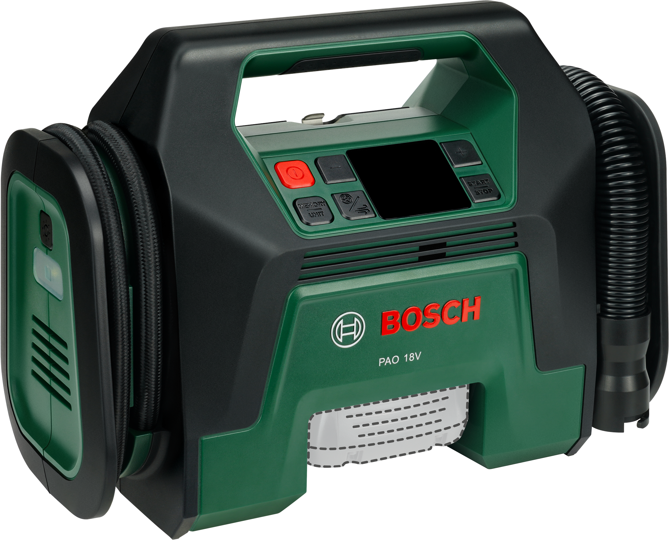 Akumulátorový vzduchový kompresor PAO 18V poskytuje vysokotlakový výstup vzduchu na hustenie pneumatík a hustenie vysokoobjemových predmetov, ako sú veľké nafukovacie člny. Je vybavený inteligentnými funkciami na výber a ukladanie vašich nastavení.