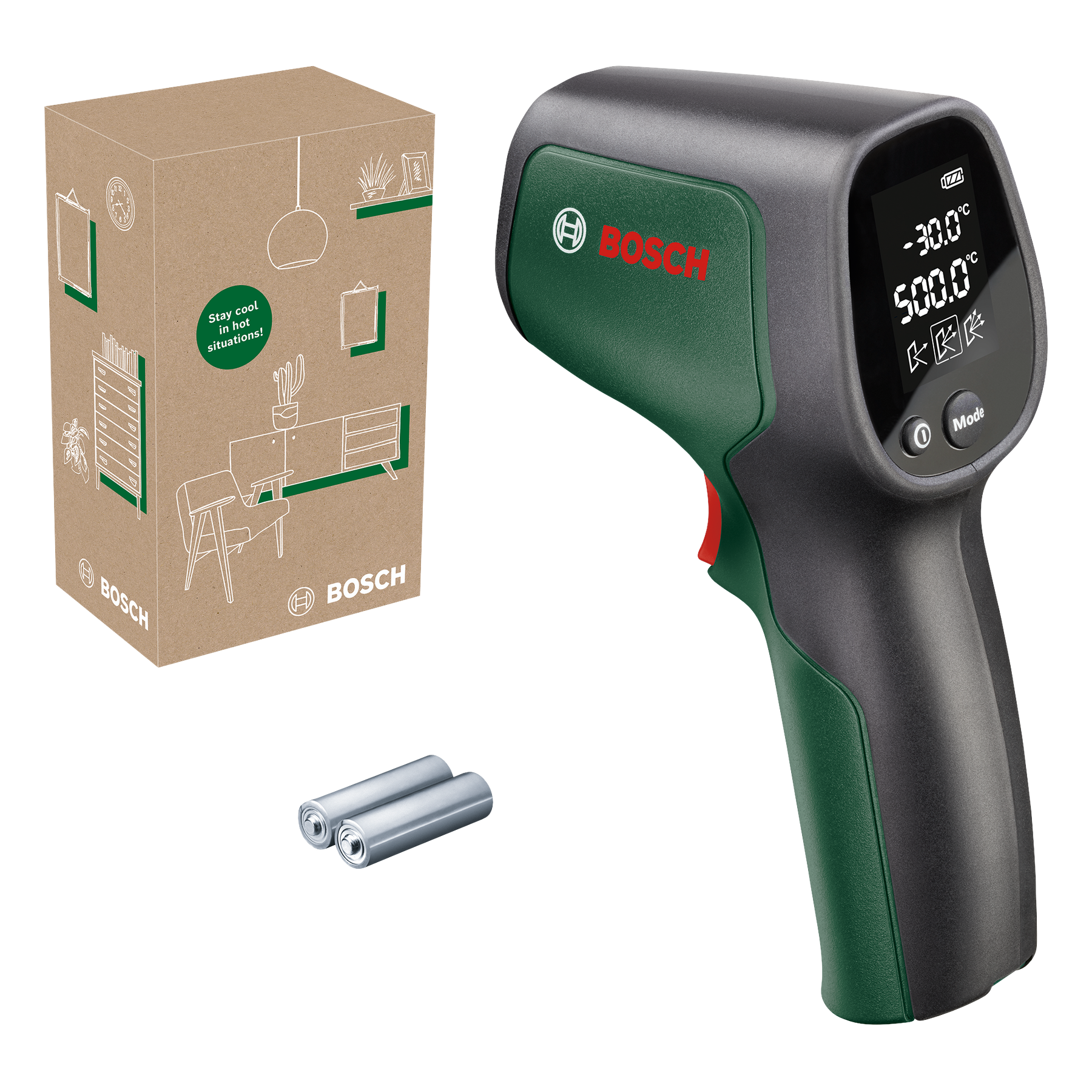Meranie povrchových teplôt s prístrojom UniversalTemp je jednoduché. Infračervená laserová technológia ponúka široký rozsah merania −30 °C až +500 °C. Vyberte si niektorý z troch režimov merania na presnejšie výsledky v závislosti od materiálu alebo prepínajte medzi individuálnym alebo nepretržitým režimom so zreteľom na potreby merania. Ergonomický dizajn teplomera, otočený segmentový displej a podsvietenie zvyšujú viditeľnosť a uľahčujú odčítanie výsledkov. Počas používania je na displeji zobrazené aktuálne meranie a predchádzajúce meranie. Meranie teploty v mrazničke alebo chladničke, peci alebo kameňoch na pizzu či kontrola izolácie okien pri detekcii zdrojov energetických strát.