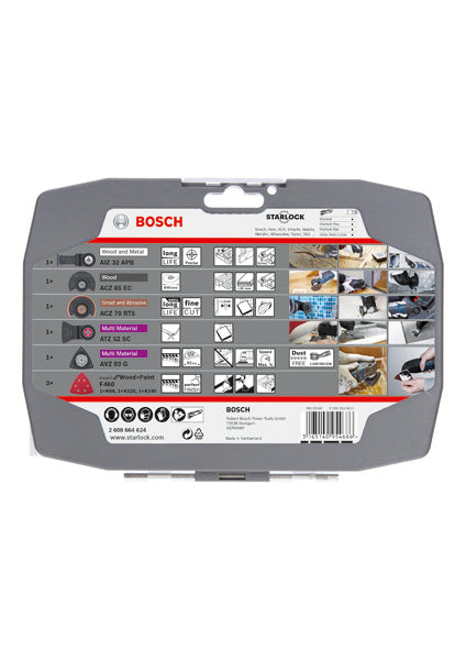 • Sada obsahuje príslušenstvá Starlock pre rezanie, rezanie so zanorením, škrabanie a brúsenie rozličných materiálov