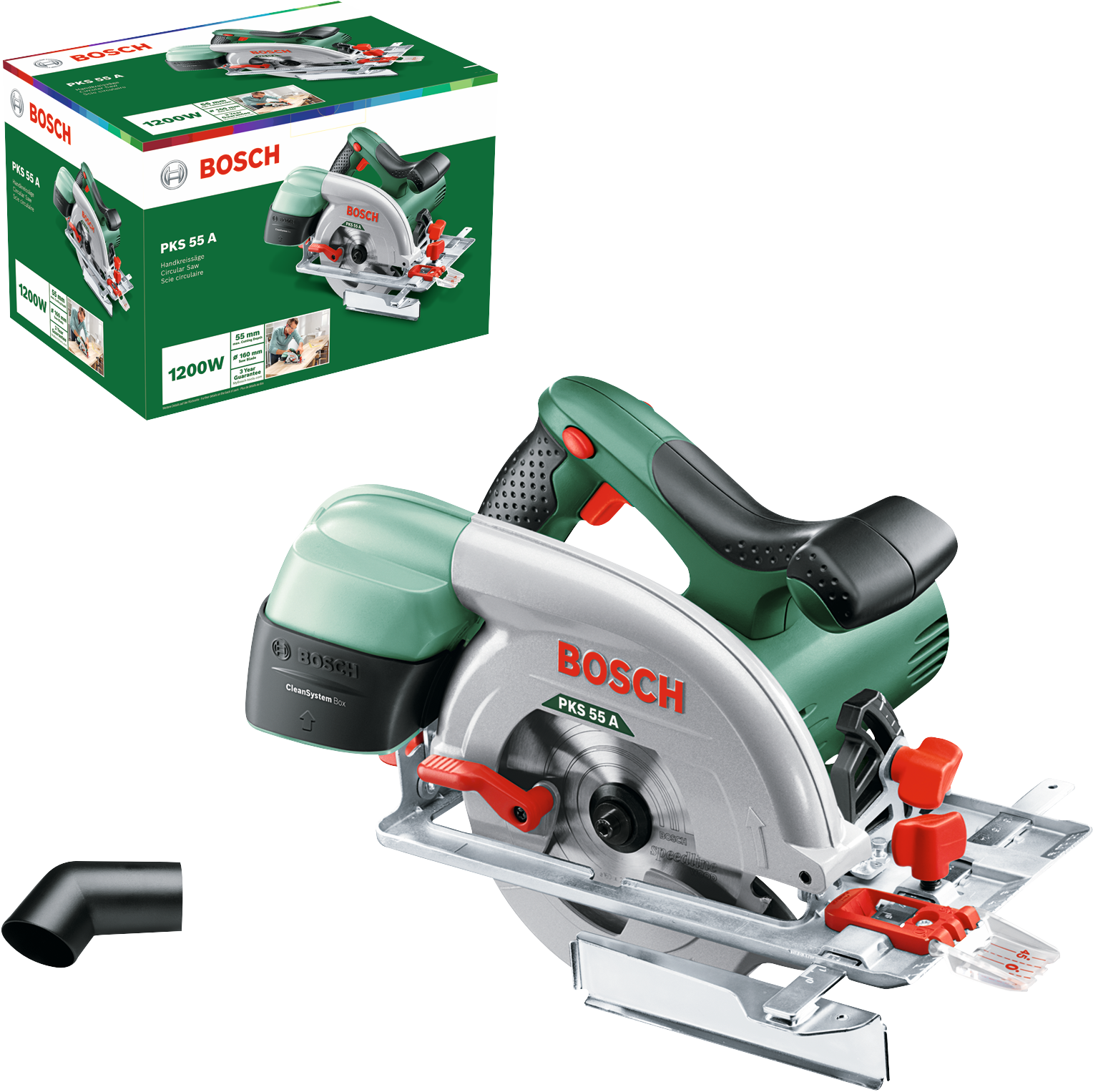 Presnosť a kontrola – využite výhody integrovaného paralelného dorazu okružnej píly PKS 55 A pre priame rezy pozdĺž línie rezu. Nastavte hĺbku a uhol rezu, aby vyhovovali potrebám každého rezu s integrovanými rýchloupínacími páčkami. CutControl poskytuje orientáciu umožňujúcu presné rezanie pozdĺž nakreslených čiar. Navrhnutá je na priame rezy v dreve. Aretácia vretena píly umožňuje výmenu pílového kotúča. CleanSystem Box zbiera piliny pri pílení a udržuje pracovisko v čistote. Má drážku v podložke, ktorá sa hodí pre systém s vodiacou koľajnicou.